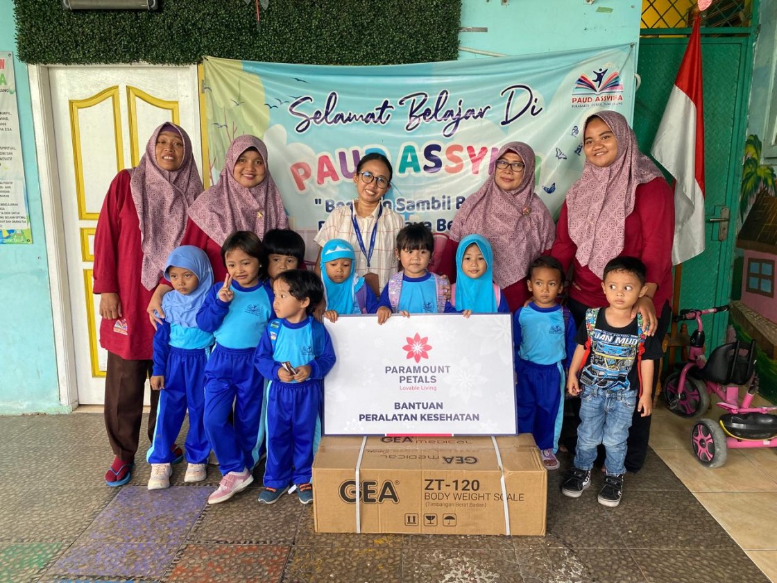 Paramount Petals melaksanakan kegiatan Stewardship, yaitu pemberian bantuan timbangan badan dan alat ukur badan kepada Paud Assyifa (Sukabakti, Curug) dan TK Ash-Shofa (Cukanggalih, Curug) pada Rabu, 30 Oktober 2024. Persembahan kasih ini merupakan wujud kepedulian perusahaan terhadap kesehatan peserta didik, di mana timbangan dan alat ukur badan merupakan sarana bagi sekolah untuk memantau pertumbuhan siswa/i secara berkala.