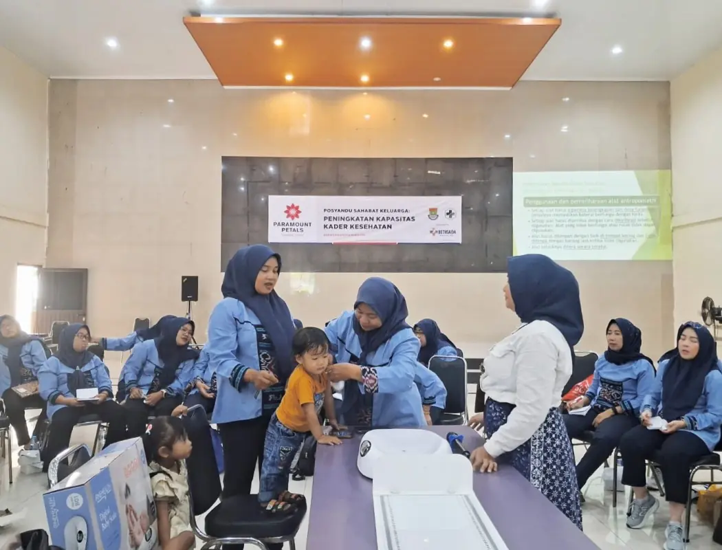 Sebagai bentuk dukungan perusahaan terhadap program pemerintah yakni pengentasan stunting pada balita, Paramount Petals berkolaborasi dengan Bethsaida Hospital melakukan pelatihan kader posyandu di Desa Kadu, Tangerang, pada tanggal 24-25 September 2025. Pelatihan bertema ‘Pemantauan Tumbuh Kembang Balita’ ini dibawakan oleh ahli gizi dari Bethsaida Hospital dan diikuti oleh peserta yang terdiri dari 80 orang kader dari 16 posyandu di Desa Kadu. Kegiatan ini bertujuan meningkatkan pengetahuan dan keterampilan kader dalam memantau tumbuh kembang balita, serta memperkuat peran kader sebagai pendamping keluarga dalam upaya pencegahan stunting dan mewujudkan generasi balita sehat di Desa Kadu.